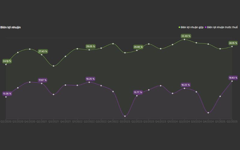 Biên lợi nhuận gộp đạt 30.15% và biên lợi nhuận trước thuế đạt 18.63%.