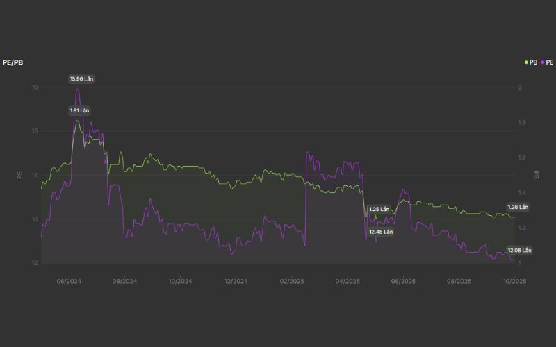 - Thấp hơn so với P/E của sàn giao dịch là 15.54 lần.