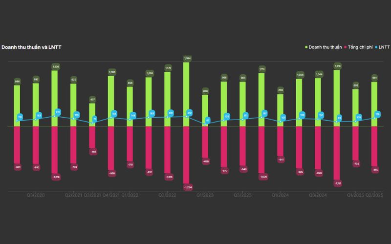 Cập nhật quý 2/2025, EPS của ACG đạt 2,940 VNĐ/CP, ROE đạt 10.05% và ROA đạt 7.86%.