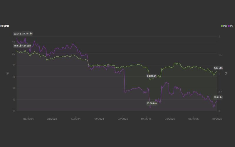 - Thấp hơn so với P/E của sàn giao dịch là 23.02 lần.