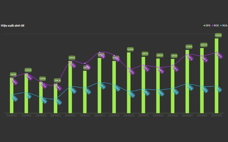 Cập nhật quý 2.2025, EPS của PVS đạt 2,644 VNĐ/CP, ROE đạt 9.22% và ROA là 4.10%.