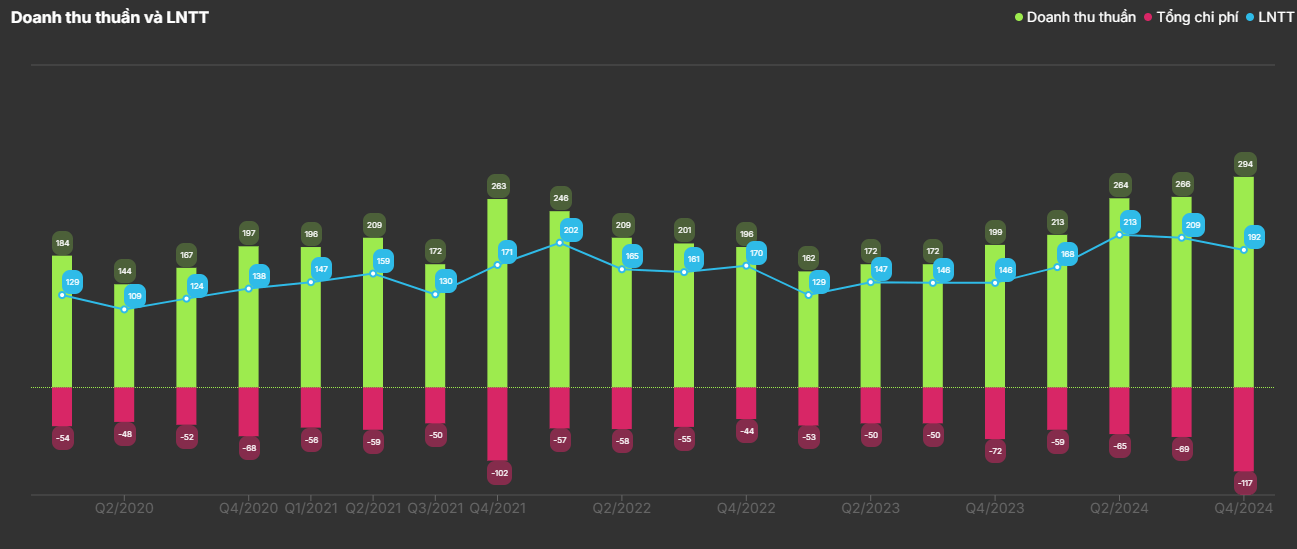 - Doanh thu thuần: 292 tỷ