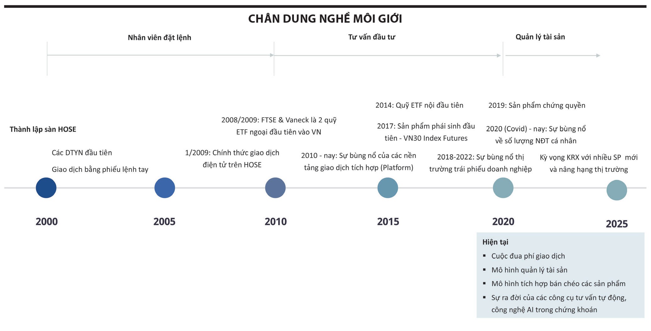 Như đã nói ở trên, thị trường chứng khoán được kỳ vọng sẽ diễn biến sôi động trong năm 2024, với nhiều câu chuyện đang cố gắng được kể. Tuy nhiên, ở góc độ làm nghề với mỗi cá nhân môi giới, việc nắm bắt cơ hội nghề trong dài hạn cũng xuất hiện nhiều thách thức. Thách thức đến từ sự thay đổi của ngành lẫn sự cạnh tranh của các nền tảng tư vấn sử dụng công nghệ.