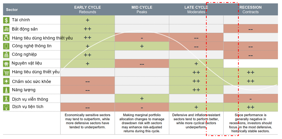 Nhà đầu tư vẫn có thể tập trung vào các cổ phiếu phòng thủ, trả cổ tức cao, có mô hình kinh doanh an toàn và không quá nhạy cảm bởi các biến số vĩ mô như lãi suất và tỷ giá. Theo ông Huy, các nhóm cổ phiếu không theo chu kỳ như Tiện ích, Hàng tiêu dùng thiết yếu, … có thể là sự lựa chọn khả dĩ trong thời gian tới. Các cổ phiếu phòng thủ, có tỷ lệ chi trả cổ tức cao bằng tiền mặt có thể là sự lựa chọn trong giai đoạn khó khăn, lấy ngắn nuôi dài.