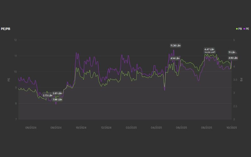 - Thấp hơn so với P/E của sàn giao dịch là 15.54 lần